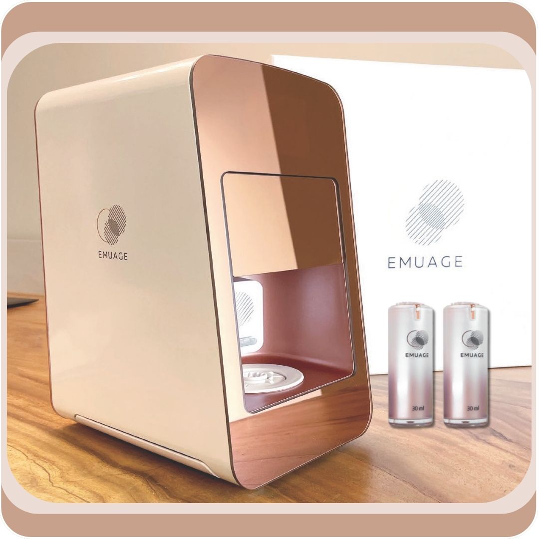 Emuage è la prima macchina al mondo a creare, utilizzando processidi laboratorio, un'ampia gamma dicosmetici freschi e su misura a based'acqua e materieMaterie prime incapsulate. MADE IN FRANCE